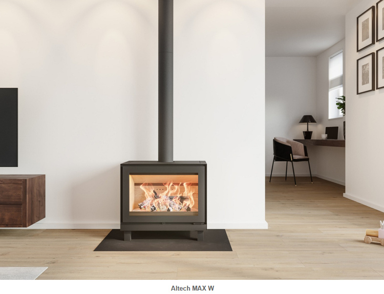 Een ongekend strak design in combinatie met de vertrouwde speksteenwarmte, dat maakt de Altech Max 'de' kachel van de toekomst. Door het stalen frame en verdiepte speksteen heeft de Altech Max het strakste design van alle speksteenkachels. Met een vermogen van 3 tot en met 8,5 kW is de Max geschikt om zowel kleinere ruimtes als grote ruimtes te voorzien van zijn heerlijke infraroodwarmte. Door het brede raam van de MAX W heeft u een prachtig zicht op het vlammenspel.