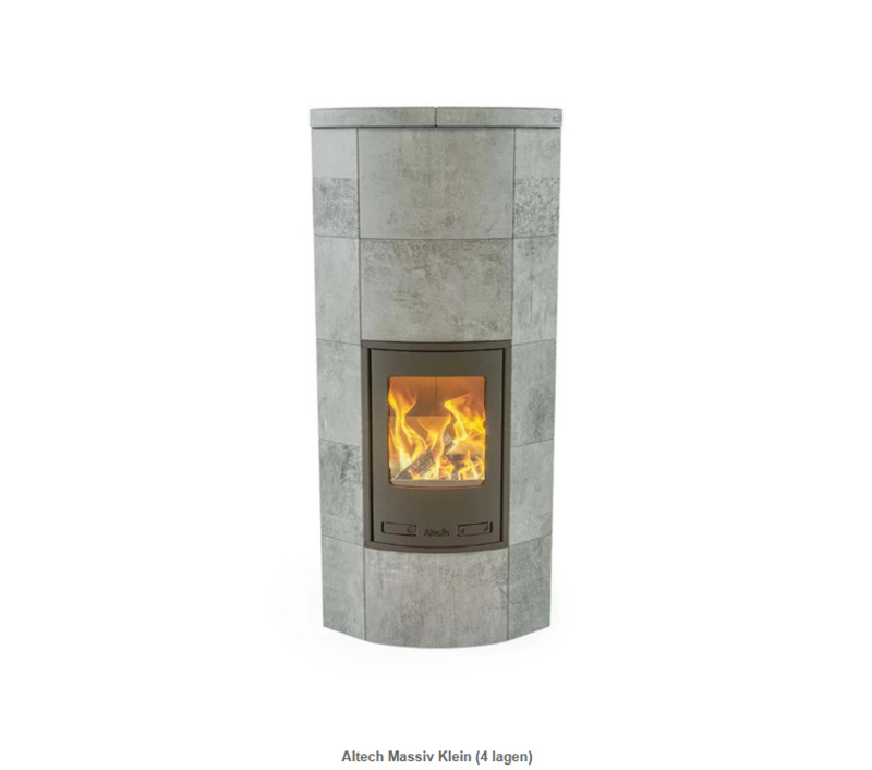 Het ronde en afgebogen front van de Altech Massiv mag uniek genoemd worden. Het voordeel bij deze speksteen kachel spreekt voor zich. Met haar vloeroppervlak van 72x56 cm neemt het topmodel van Altech niet veel meer plaats in dan een willekeurige andere houtkachel.