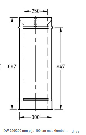 DW-250300 mm pijp 100 cm met klemband rvs