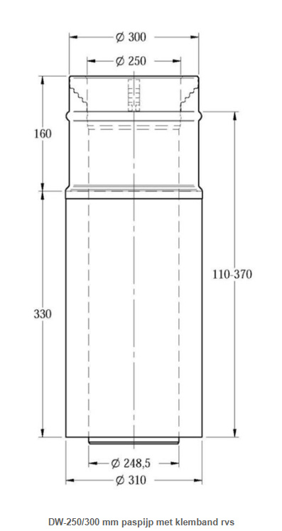 DW-250/300 mm paspijp met klemband rvs