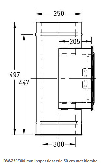 DW-250/300 mm inspectiesectie 50 cm met klemband rvs