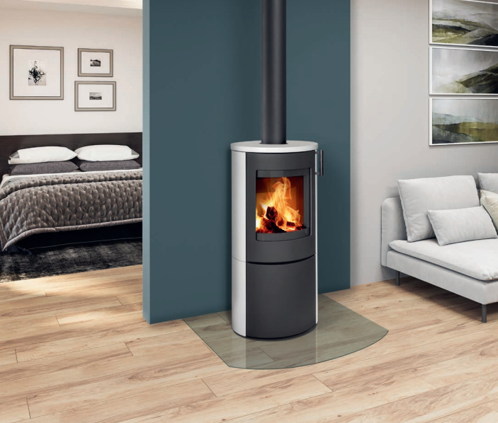 OverzichtDe moderne ovale vorm van de haardkachel LAMIA N past zich aan elk interieur aan en na het