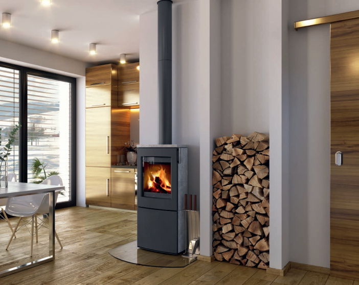 OverzichtDe compacte haardkachel NEMEA N biedt voldoende vermogen bij ecologische houtverbranding.