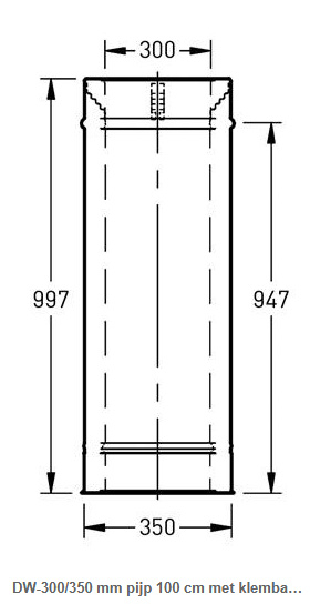 DW-300/350 mm pijp 100 cm met klemband rvs