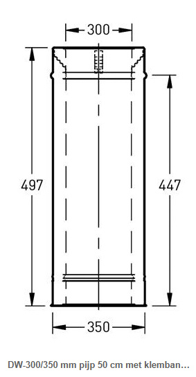 DW-300/350 mm pijp 50 cm met klemband rvs