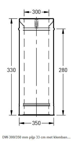 DW-300/350 mm pijp 33 cm met klemband rvs