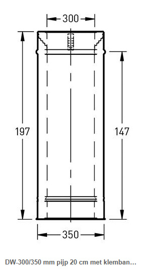 DW-300/350 mm pijp 20 cm met klemband rvs