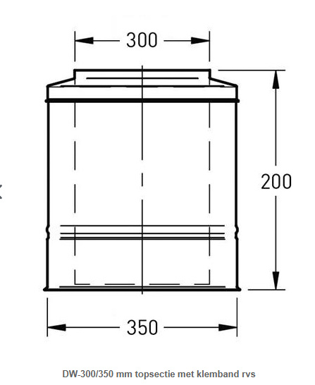 DW-300/350 mm topsectie met klemband rvs