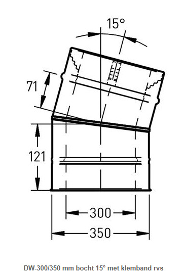DW-300/350 mm bocht 15° met klemband rvs