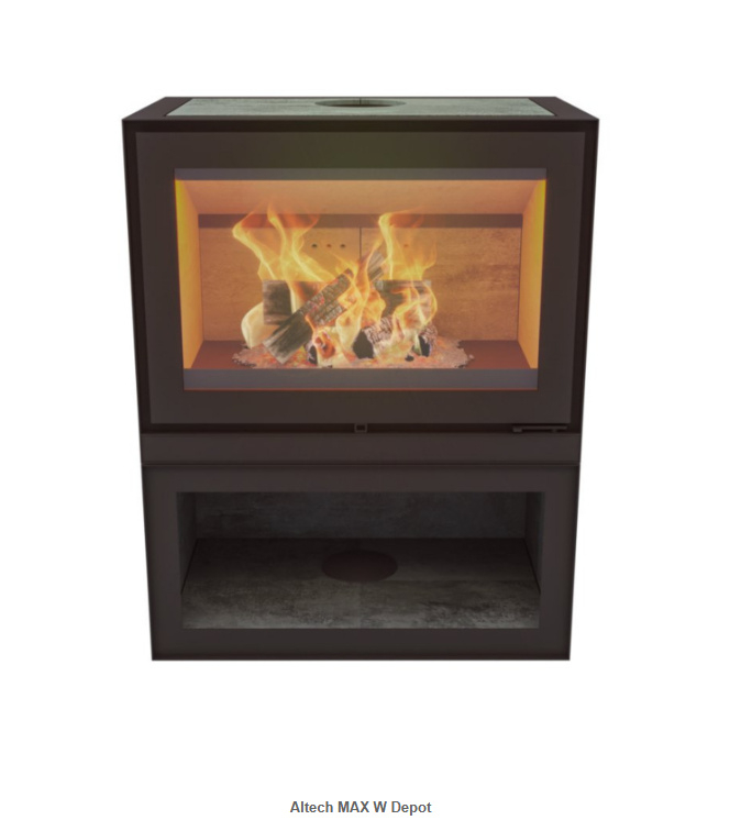 Altech MAX W DepotAltech MAX W DepotEen ongekend strak design in combinatie met de vertrouwde speksteenwarmte, dat maakt de Altech Max 'de' kachel van de toekomst. Door het stalen frame en verdiepte speksteen heeft de Altech Max het strakste design…