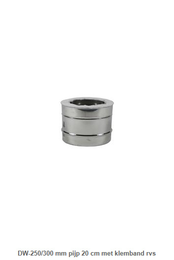 DW-250/300 mm pijp 20 cm met klemband rvsSpecificaties:Dubbelwandig pijp 20 cm rvs