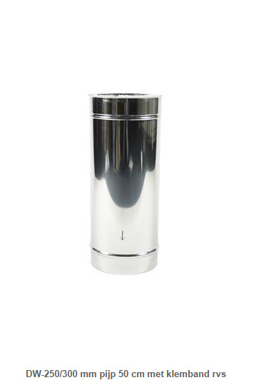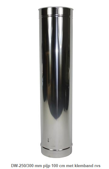 DW-250300 mm pijp 100 cm met klemband rvsSpecificaties:Dubbelwandig pijp 100 cm rvs