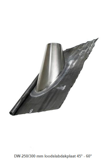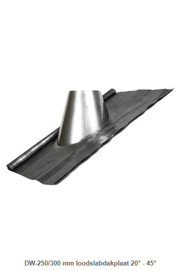 DW-250/300 mm loodslabdakplaat 20° - 45°Specificaties:Dubbelwandig loodslabdakplaat 20° - 45°