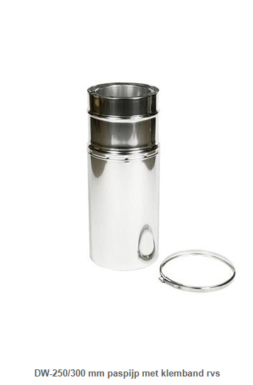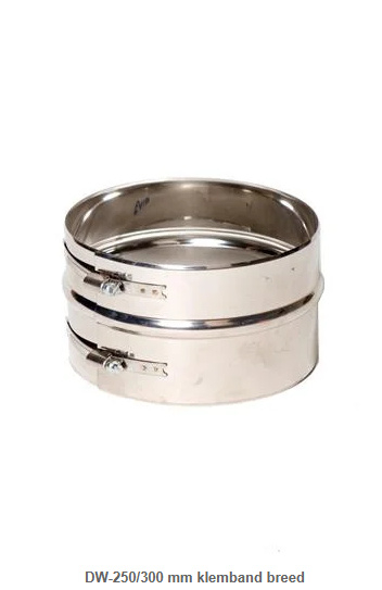 DW-250/300 mm aansluitstuk met klemband rvsSpecificaties:Dubbelwandig aansluitstuk rvs