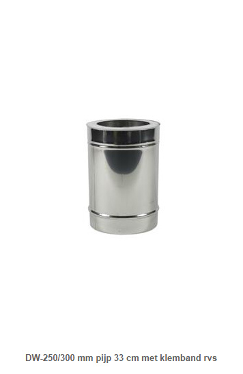 DW-250/300 mm pijp 33 cm met klemband rvsSpecificaties:Dubbelwandig pijp 33 cm rvs