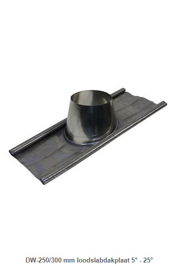 DW-250/300 mm loodslabdakplaat 5° - 25°Specificaties:Dubbelwandig loodslabdakplaat 5° - 25°