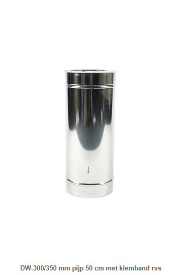 DW-300/350 mm pijp 50 cm met klemband rvsSpecificaties:Dubbelwandig pijp 50 cm rvs