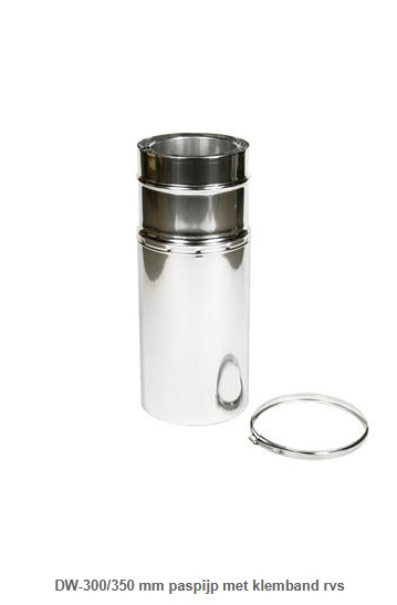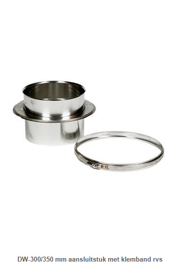 DW-300/350 mm aansluitstuk met klemband rvsSpecificaties:Dubbelwandig aansluitstuk met klemband rvs