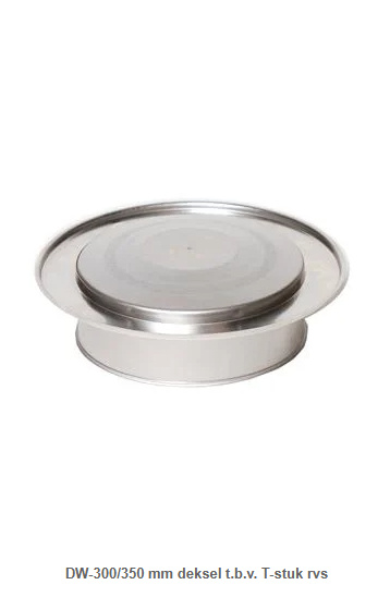 DW-300/350 mm deksel t.b.v. T-stuk rvsSpecificaties:Dubbelwandig deksel t.b.v. T-stuk rvs
