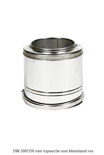 DW-300/350 mm topsectie met klemband rvsSpecificaties:Dubbelwandig topsectie met klemband rvs
